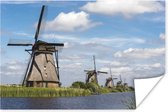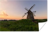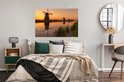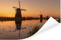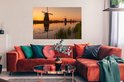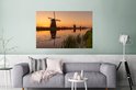 Red glow in the sky at the Windmills of Kinderdijk in Europe Poster 120x80 cm - Tirage photo sur Poster (décoration murale salon / chambre)