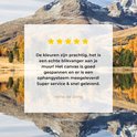 La photo est imprimée sur une toile robuste de 260 grammes de 0,41 mm d'épaisseur. Le lin est tendu étroitement sur un cadre en bois de deux centimètres d'épaisseur. Ce cadre en bois est en bois de pin certifié PEFC de qualité. Un système de suspension peut être commandé en option avec le produit pour fixer facilement l'impression au mur.