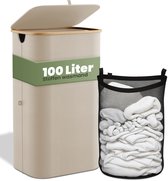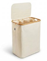 Panier à linge en bambou avec couvercle, sac en coton et poignées - 72L - Brun naturel