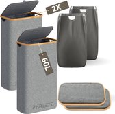 Panier à linge étroit avec couvercle et sac à linge - 60L - Étroit - Panier à linge - Pliable - Panier de rangement - Lin - Grijs