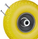Si vous avez besoin d'un nouveau pneu pour votre remorque de jardin, procurez-vous des pneus anti-crevaison 3.00-4 avec les roues du chariot. Les roues de secours en caoutchouc PU n'ont pas d'air et sont donc insensibles aux épines, clous et autres objets pointus. De plus, les pneus en caoutchouc sont toujours prêts à l'emploi, car ils ne perdent pas d'air. Les paliers lisses et la bande de roulement profilée facilitent la poussée. Les roues chargeables sont disponibles dans différentes combinaisons de couleurs. Roue de diable 4 pièces en détail - Roue: 3.00-4 - Diamètre de la roue: environ 26 cm - Largeur de la roue: environ 8,5 cm - Capacité de charge: environ 150 kg chacune - Poids: environ 1 kg chaque Jeu de roues de secours pour chariot à main et plus - Diamètre de l'essieu intérieur: environ 2 cm - Longueur du moyeu: environ 7,5 cm - Diamètre de la jante: environ 11,5 cm - Matériau: caoutchouc PU, acier - Couleur: jaune-gris Pneu en caoutchouc anti-crevaison - Fabriqué en caoutchouc avec jante en acier robuste - Durable et résistant aux éclats, etc. - Avec roulement à billes pour le confort de conduite - Bande de roulement profilée pour plus de contrôle - Roue de secours pour diable, diable, etc. Livraison - 4 x volant - Décoration non incluse
