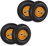 relaxdays 4 x jeu de roues de diable - pneu en caoutchouc - chariot à main - 150 kg - jante en acier