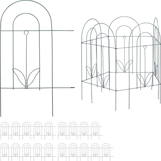 relaxdays clôture de lit 10 pièces - clôture décorative - bordure de bordure - haute - vert - métal - clôture de jardin