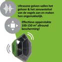 Notre répulsif à oiseaux offre une protection à long terme contre les oiseaux et prévient la nidification et les nuisances sonores. L'appareil émet des ondes ultrasonores qui affectent l'audition et le système nerveux des oiseaux, les rendant inconfortables. De plus, il dérange les animaux la nuit avec un signal lumineux, les faisant éviter leur lieu de couchage. La plage de fonctionnement est d'environ 100 à 150 m² ou 7 m à un angle de 360 degrés pour une protection complète afin d'éviter l'accoutumance. Le répulsif solaire contre les oiseaux est idéal pour les jardins, les plantations, les façades, les balcons, les arbres fruitiers et bien plus encore.