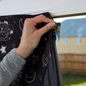 - Les bords velcro permettent d'ajuster la taille du rideau à différentes tailles de fenêtre lors de vos déplacements
