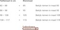 Pour déterminer votre taille de ceinture, vous devez connaître votre tour de taille (l'endroit où vous portez la ceinture). Voir ci-dessous quel tour de taille appartient à quelle taille de ceinture :