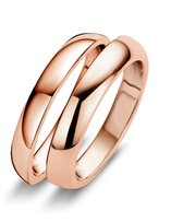 Bague femme élégante en acier inoxydable. Cette bague de couleur rose possède 2 arcs dont 1 serti de pierres de zircone transparentes. Le design donne l'impression que vous portez 2 bagues. Cette bague élégante pour femme de LGT JWLS a un poids de 3 grammes et une largeur de 8 mm.>