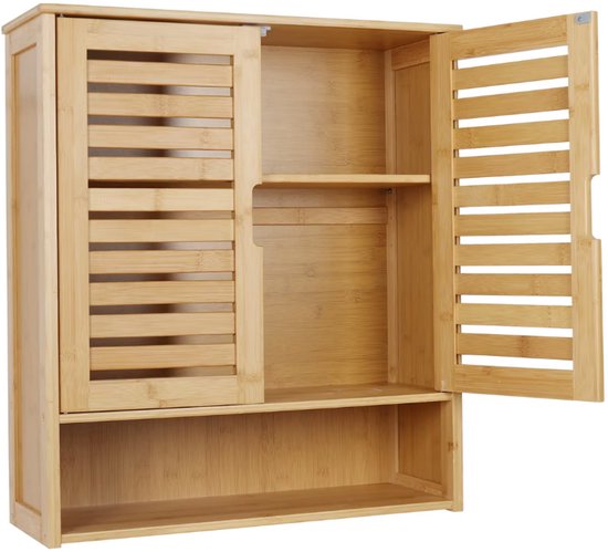 RM Store® - RM Store® - Armoire murale - Armoire de rangement - Armoire à pharmacie - Armoire de salle de bain - Fixation murale - Avec Planches réglables - 3 Planches - Bois - 59 x 20,5 x 66,5 cm.