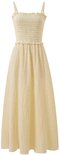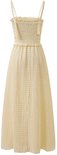 La robe FRNCH Marianne est la pièce estivale par excellence pour un look léger et élégant. Cette longue robe maxi présente un subtil motif à carreaux jaunes et est confectionnée dans un mélange de coton et de lin respirant. Le buste smocké avec de fins plis assure une coupe flatteuse, tandis que les doubles bretelles réglables ajoutent une touche ludique. La texture douce du tissu et la silhouette fluide rendent cette robe parfaite pour les journées chaudes. Portez-le avec des sandales ou des baskets et vous serez prêt pour une journée d'été avec style.