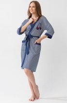 Robe de chambre fine dames - bleu - ours - capuche - sans cache-cœur - pour pyjama - taille M