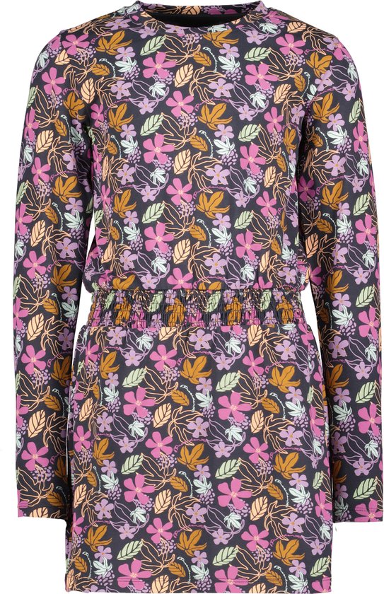 Robe pour fille 4PRESIDENT Mira avec imprimé floral intégral ou imprimé zigzag et taille élastique. Matière 95 % Katoen / 5 % élasthanne.