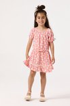 Robe GARCIA Filles , imprimé intégral, rose, manches courtes