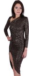 Ajustée, avec une fente sur le devant et un décolleté asymétrique original.