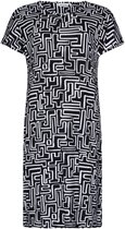 La robe présente un imprimé all-over de gros carreaux dans les couleurs blanc, écru, bleu clair et bleu foncé, ce qui lui confère un look frais et moderne. La robe a un col rond et des manches courtes. Un joli détail sont les cordons ludiques sur les manches, avec lesquels vous pouvez raccourcir ou allonger les manches wens .