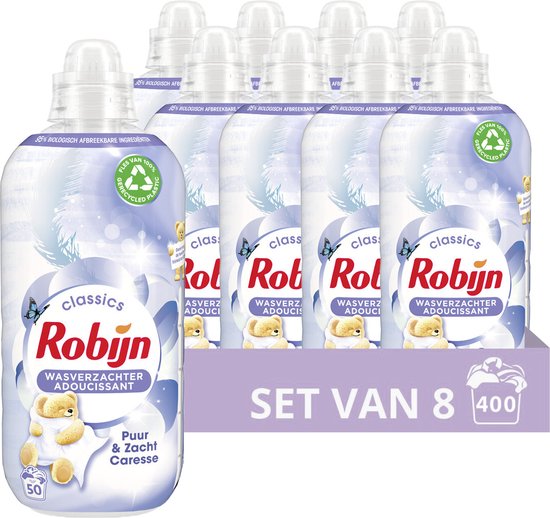 Robijn - Adoucissant liquide - Pure & Soft - Avec parfum floral rafraîchissant - 8 x 50 lavages - Pack économique