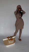 Extérieur en roseau de papier. Intérieur 100% polyester. Poche intérieure pratique pour téléphone. Verrouillable avec cordon de serrage.Spécifications produit
