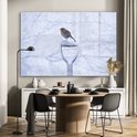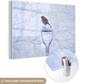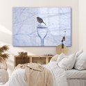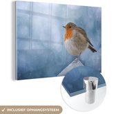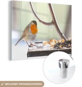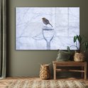 Robin sur une pelle enneigée Plexiglas 180x120 cm - Tirage photo sur Glas (Décoration murale plexiglas) XXL / Groot format!
