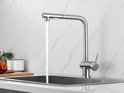 Le robinet de cuisine est en acier inoxydable et des inserts en céramique sont utilisés. Le robinet est facile à utiliser avec le levier unique.