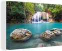 Roches couvertes de mousse devant la cascade du parc national d'Erawan Toile 140x90 cm - Tirage photo sur toile (décoration murale salon / chambre)