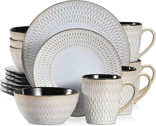 Rendez chaque repas spécial avec le service de vaisselle de Luxe Roroa, un ensemble élégant et complet de 16 pièces pour huit personnes. Cette vaisselle au motif gris ajoute une touche raffinée à votre table, parfaite aussi bien pour un usage quotidien que pour les grandes occasions.