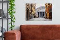 La photo est imprimée sur une toile robuste de 260 grammes de 0,41 mm d'épaisseur. Le lin est tendu étroitement sur un cadre en bois de deux centimètres d'épaisseur. Ce cadre en bois est en bois de pin certifié PEFC de qualité. Un système de suspension peut être commandé en option avec le produit pour fixer facilement l'impression au mur.