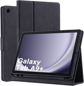 Rosso Element Book Case Cover pour Samsung Galaxy Tab A9 Plus | Une protection complète | Ruban élastique | Fonction veille / réveil | Avec porte-stylo | Support réglable | Noir