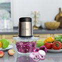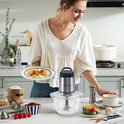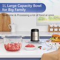 Gagner du temps? C'est possible avec notre hachoir/hachoir, car vous pouvez broyer facilement et rapidement tous les ingrédients, des oignons aux noix ! Le bol mélangeur a une grande capacité de 1,2 litre et est transparent. Le hachoir contient une lame en acier amovible et a deux fonctions de vitesse.