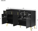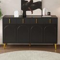 Buffet avec poignées et Pieds dorés – 4 Portes, 4 tiroirs, avec Parquet stratifié amovible