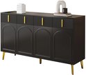 Ce buffet offre une combinaison parfaite d'élégance et d'espace de rangement pratique. Les poignées et les pieds dorés offrent un aspect luxueux, tandis que la construction robuste garantit une utilisation à long terme. Le buffet dispose de quatre portes et de quatre tiroirs, qui offrent suffisamment d'espace pour ranger de la vaisselle, des documents ou d'autres articles ménagers. Le stratifié amovible rend l'entretien facile et flexible.