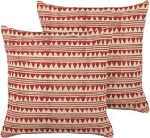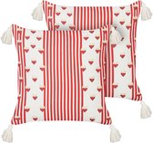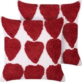 RUBIA - Sierkussen lot de 2 - Wit/ Rouge - 45 x 45 cm - Katoen