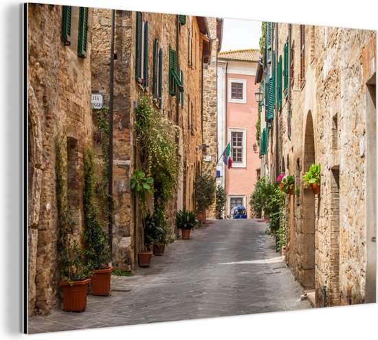 Rue de la ville médiévale italienne de San Gimignano en Toscane Aluminium 30x20 cm - petit - Tirage photo sur aluminium (décoration murale en métal)