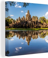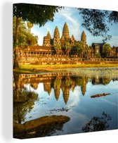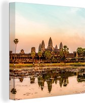 Angkor Wat derrière le lac en toile carrée 2cm 20x20 cm - petit - Tirage photo sur toile (Décoration murale salon / chambre)