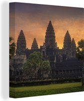 Coucher de soleil sur Angkor Wat en toile carrée 2cm 20x20 cm - petit - Tirage photo sur toile (Décoration murale salon / chambre)