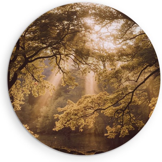 Saammp Wall Circle Bois - Incidence lumineuse - Arbres - Paysage - Nature - Ø 70 - Cercle mural - Décoration murale Cercle - Décoration murale Salon - Décoration chambre - Peinture ronde