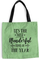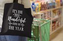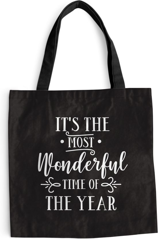 Sac à bandoulière - Sac de plage - Citation de Noël Shopper C'est la plus belle période de l'année sur fond noir - 45x45 cm - Sac en coton