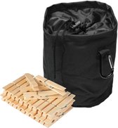 Sac à pince à linge avec mousqueton - y compris 96 piquets en bois - sac à pince à linge