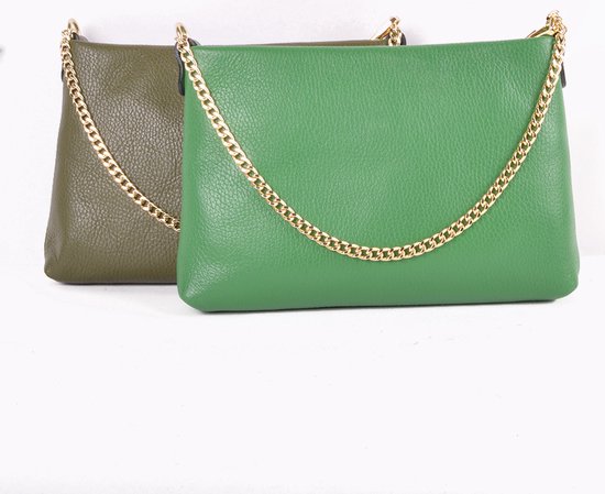 Ce magnifique sac à bandoulière en cuir est un mélange parfait d'élégance et de polyvalence. Le sac est livré avec une courte chaîne dorée pour un look chic, tandis que la chaîne plus longue et amovible offre la possibilité de porter le sac de différentes manières : comme sac à main ou en bandoulière. Le cuir luxueux et les détails dorés raffinés font de ce sac un accessoire intemporel qui complète n'importe quelle outfit .