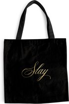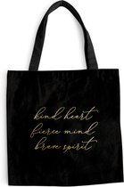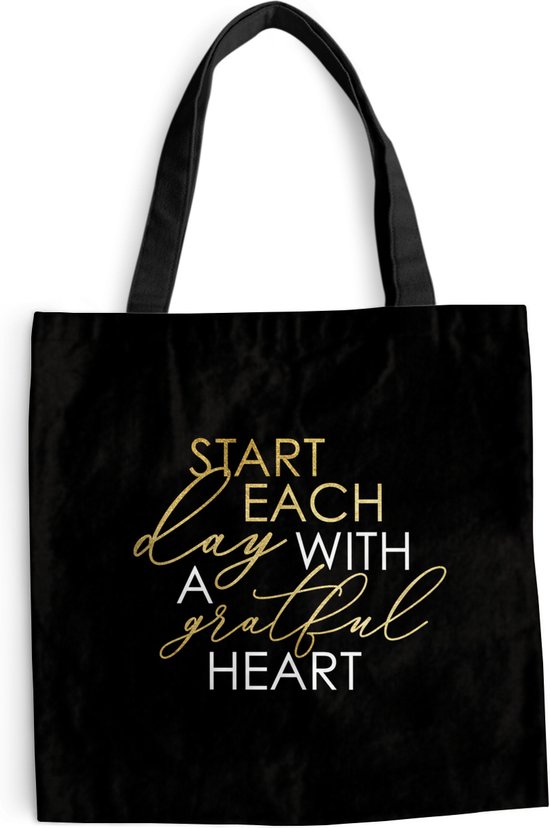 Sac Bandoulière - Sac de Plage - Citation Shopper - Coeur - Goud - Zwart - 40x40 cm - Sac en coton