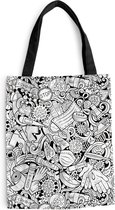 Sac Bandoulière - Sac de Plage - Motif Shopper - Ressorts - Wit - 40x50 cm - Sac en coton