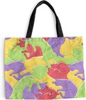 Le sac est en tissu polyester avec une structure en coton. Le sac de transport a deux anses en coton. De plus, le sac à main est lavable à 30 degrés. Le sac est également léger et pliable, vous pouvez donc toujours l'avoir avec vous. Vous voulez vraiment ce client !