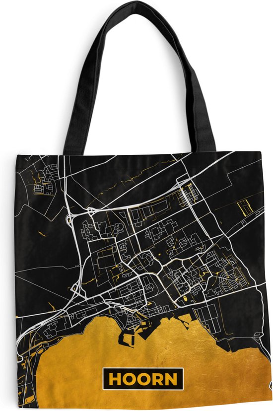 Sac bandoulière - Sac de plage - Shopper City Map - Corne - Or - Zwart - 40x40 cm - Sac en coton