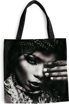 Le sac est en tissu polyester avec une structure en coton. Le sac de transport a deux anses en coton. De plus, le sac à main est lavable à 30 degrés. Le sac est également léger et pliable, vous pouvez donc toujours l'avoir avec vous. Vous voulez vraiment ce client !