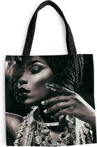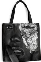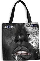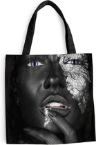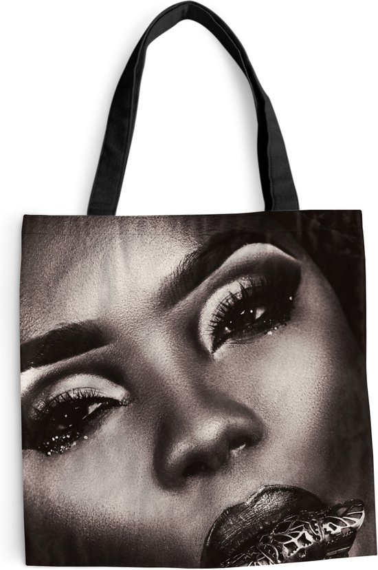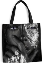 Sac Bandoulière - Sac De Plage - Shopper Femme - Wimpers - Zwart - Wit - 45x45 cm - Sac Coton