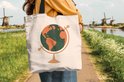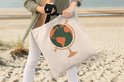 Sac Bandoulière - Sac De Plage - Shopper Globe - Voyages - Pastel - 45x45 cm - Sac Coton