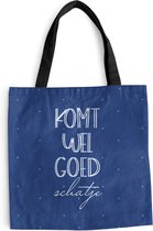 Le sac est en tissu polyester avec une structure en coton. Le sac de transport a deux anses en coton. De plus, le sac à main est lavable à 30 degrés. Le sac est également léger et pliable, vous pouvez donc toujours l'avoir avec vous. Vous voulez vraiment ce client !