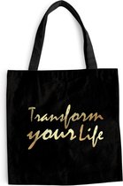 Sac à bandoulière - Sac de plage - Shopper Quote - Life - Or - Zwart - 40x40 cm - Sac en coton