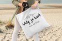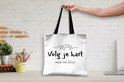 Le sac est en tissu polyester avec une structure en coton. Le sac de transport a deux anses en coton. De plus, le sac à main est lavable à 30 degrés. Le sac est également léger et pliable, vous pouvez donc toujours l'avoir avec vous. Vous voulez vraiment ce client !
