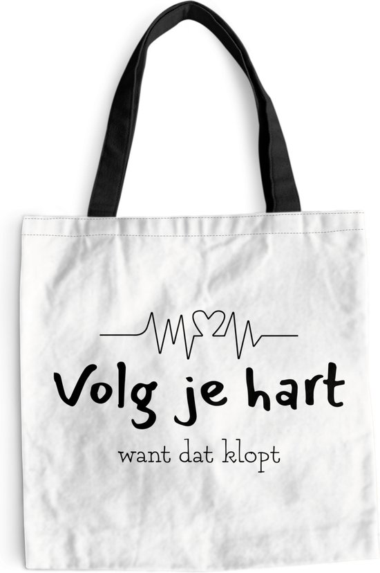 Sac bandoulière - Sac de plage - Shopper Heart - Citations - Zwart - Wit - 40x40 cm - Sac coton