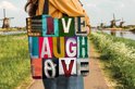 Collage de lettres orthographiant la citation : 'Live laugh love'.