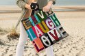 Sac bandoulière - Sac de plage - Shopper Live laugh love - Proverbes - Citations - 45x45 cm - Sac coton